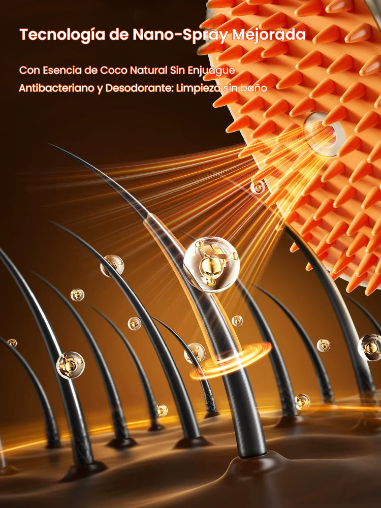Nuestro cepillo revolucionario utiliza tecnología de nano-spray para atrapar el pelo muerto mientras limpia y masajea a su mascota. Gracias a su diseño ergonómico con 84 púas de goma redondeadas, cada peinado se convierte en una experiencia de "salón".