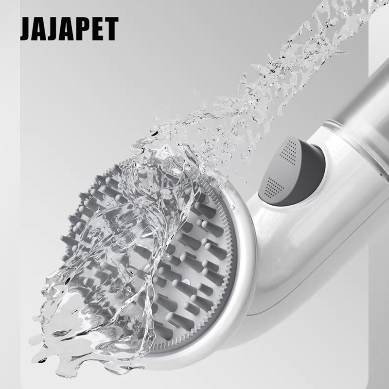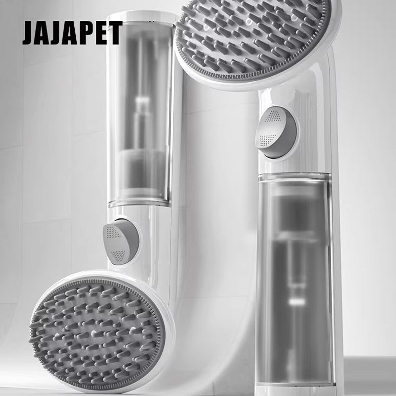 Convierte el aseo en un momento de spa. El Cepillo 3 en 1 JA JAPET combina un depósito para mousse con cerdas de silicona de triple capa, capaces de masajear, limpiar y retirar pelo muerto al mismo tiempo.