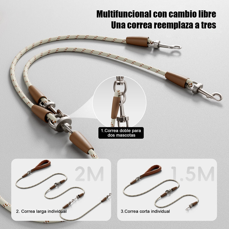 ¡Pasea a tus dos peludos con una sola mano y cero enredos!
