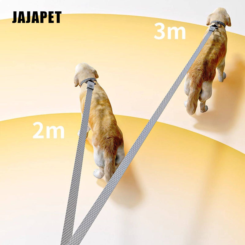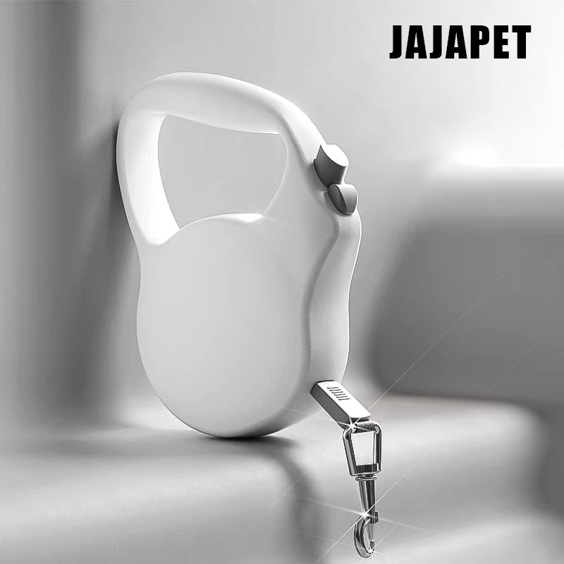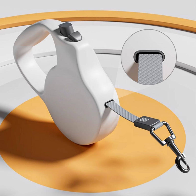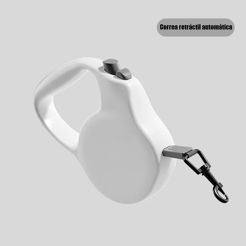Con solo 118 g (¡lo que pesan dos huevos!), esta correa retráctil de 3 metros convierte cada paseo en una experiencia cómoda y elegante. Su diseño ergonómico cabe en cualquier bolso; su mecanismo de retracción interior —con muelle de acero inoxidable y sistema de enrollado preciso— asegura una salida de cinta fluida, sin atascos ni enredos.