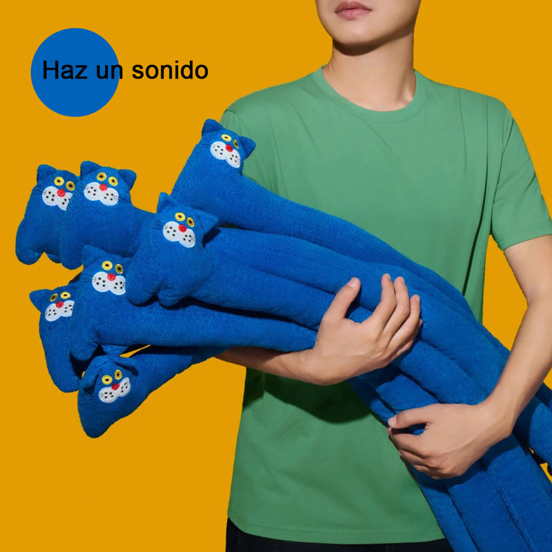 El Gato Azul de JAJAPET es lo suficientemente largo para un juego intenso de tira y afloja, lo bastante flexible para retorcerse en divertidos nudos, y tan suave que sirve de cojín después de la sesión de juego.