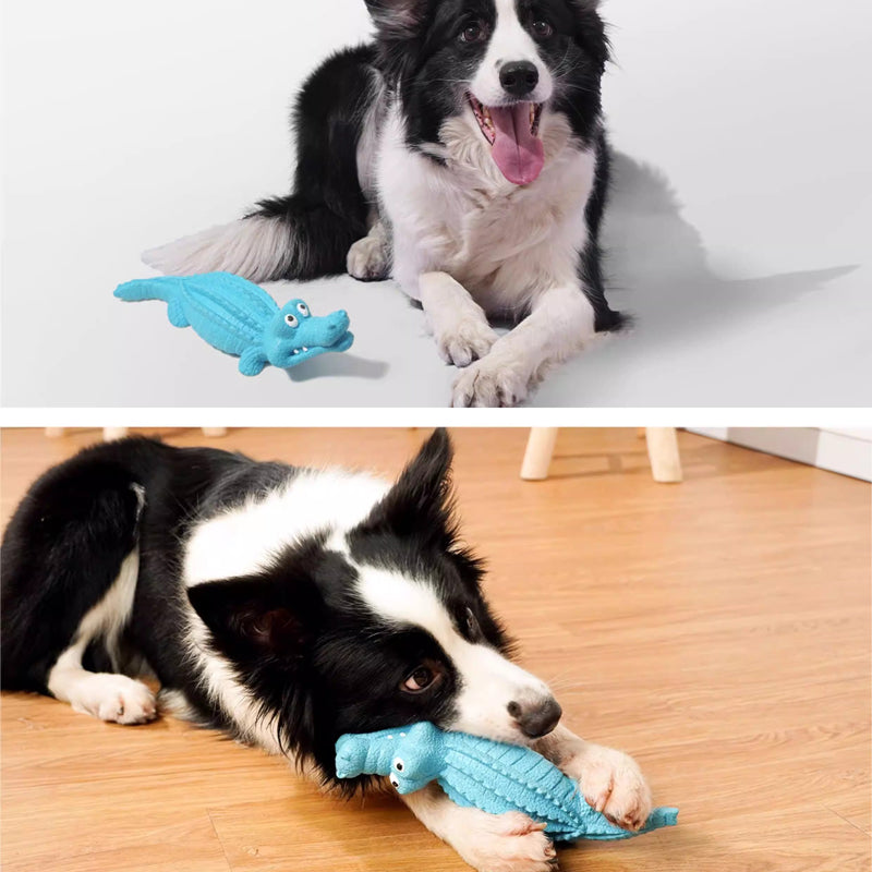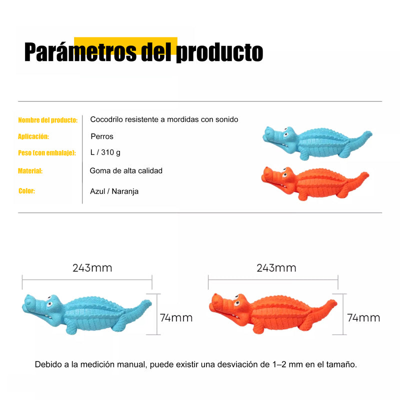 Convierte el tiempo de juego de tu perro en una experiencia divertida y saludable. Este cocodrilo de goma de alta densidad soporta mordidas intensas, incluye un silbato interno que emite sonido al presionarlo y libera un tentador aroma a carne que cautiva incluso a los masticadores más exigentes.