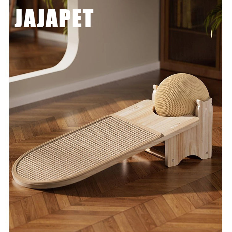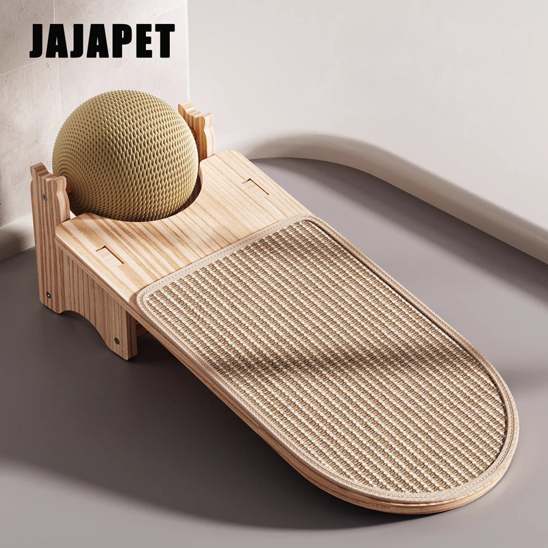 El JAJAPET WoodClimb combina una alfombrilla de yute extra-grande con una bola de sisal montada sobre base de madera maciza. Rascar, trepar, afilar uñas o echar la siesta: todo en el mismo mueble, sin ocupar medio salón.