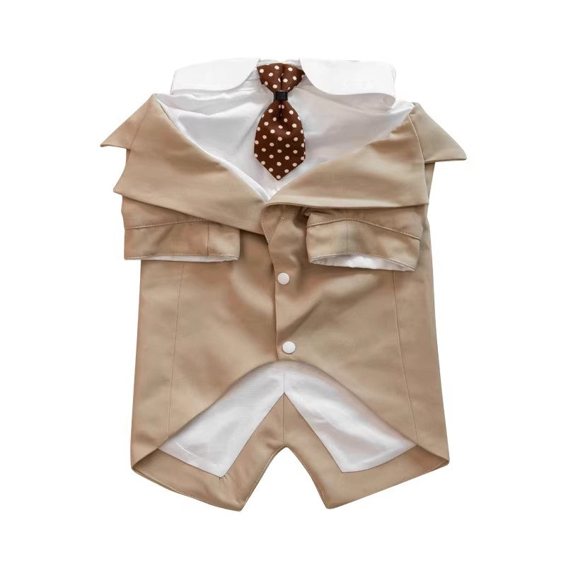 Inspirado en los smokings clásicos, este conjunto 3-en-1 (chaqueta, camisa y corbata cosidas) convierte cualquier paseo en alfombra roja. Diseñado por amantes de las mascotas que quieren fotos memorables sin incomodar al peludo.